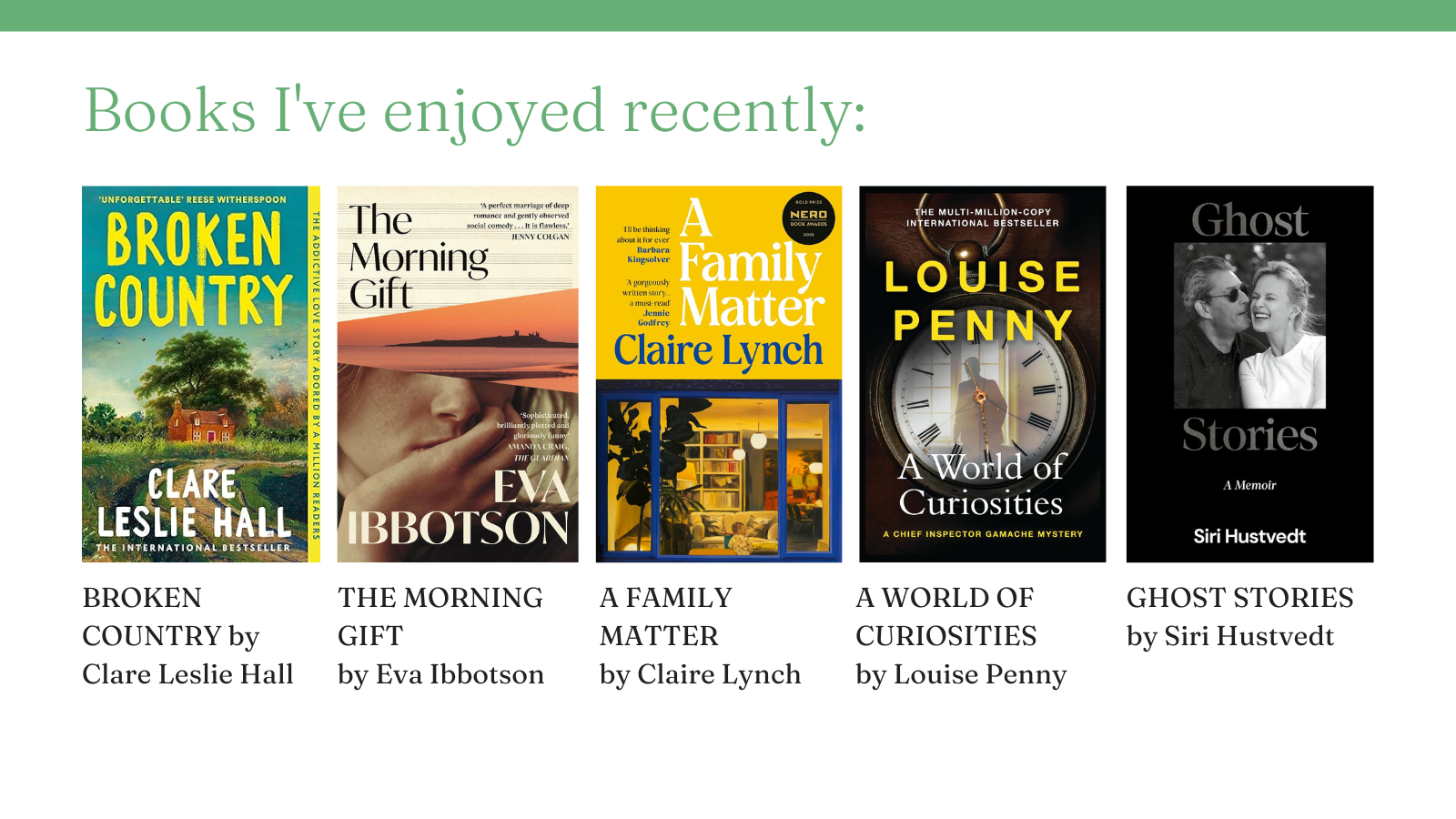 Favourite authors include Kate Atkinson, Claire Keegan, Elizabeth Strout, Shirley Jackson, Zora Neale Hurston and Nora Ephron. I’m drawn to rich and multi-layered stories of women, families, friendships and relationships, and love small communities with lots going on beneath the surface; I prefer the small and intimate to the epic and world-affecting.