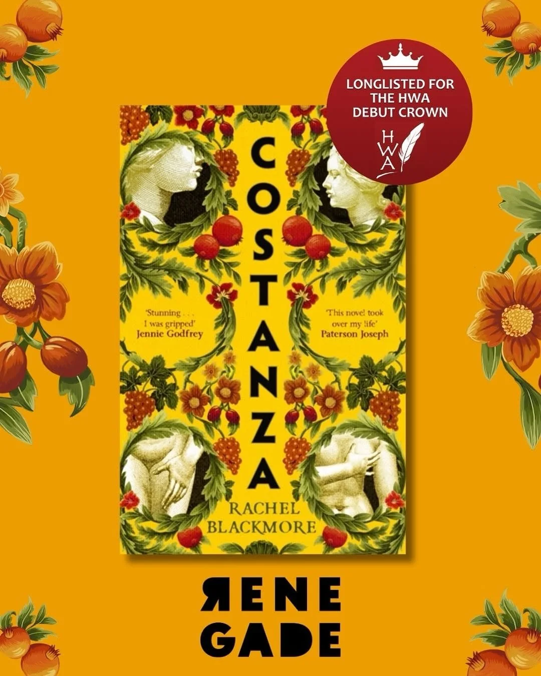 ‘Spent my week immersed in this stunning piece of historical fiction, COSTANZA… This gorgeous, intimate portrayal of Costanza herself, reminded me of THE MARRIAGE PORTRAIT in its melding of art & artistry with the lives of the women of the time’ – Jennie Godfrey