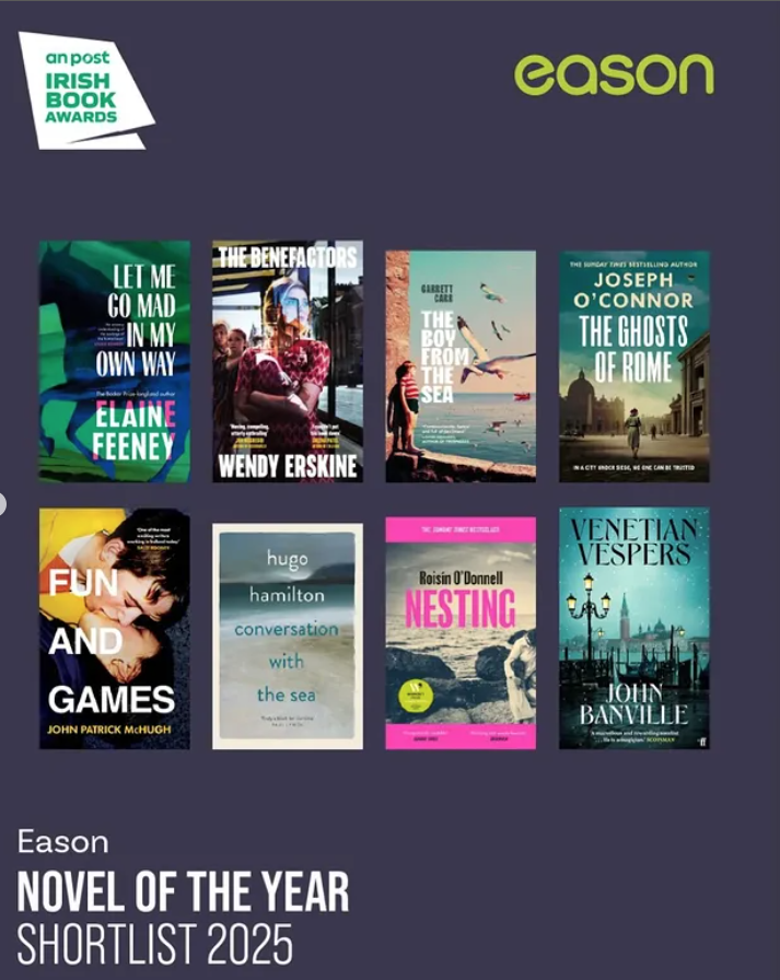 THE GHOSTS OF ROME by Joseph O’Connor has been shortlisted for the Listeners’ Choice Award and the Novel of the Year Award at the An Post Irish Book Awards 2025. This year marks the twentieth anniversary of the Irish Book Awards, a set of industry-recognition awards set up by a coalition of Irish booksellers to celebrate and promote Irish writing, with winners voted for by readers. The winners will be announced at a ceremony on 27th November and the An Post Irish Book of the Year TV show will air on RTÉ One on 11th December.
